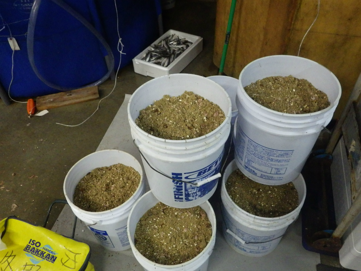 今回の付け餌にはオキアミを使用!サナギも試しましたが当たりが皆無に等しかった。。。地元の方曰く、サナギは日によって当たり外れが激しいとのこと。