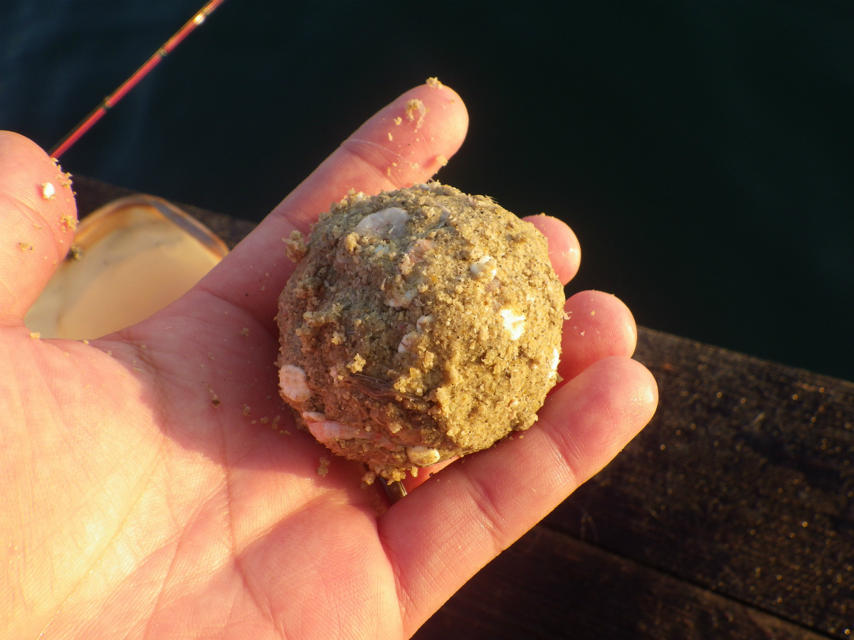 直径7cm位に握ったダゴチン団子ボール!団子を握る度に隠し味として僕のチヌへの愛情を精一杯込めました(*´艸`*)が。。。