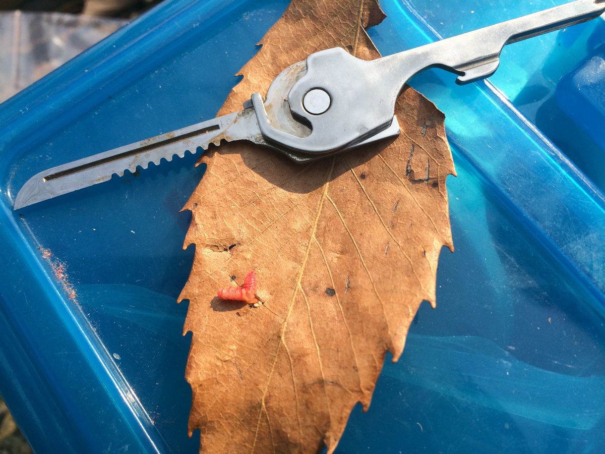 餌の紅サシ虫は針にちょん掛けして使用しますが、掛ける前に紅サシ虫の体を針先で傷つけたり、掛けた場所と逆側をハサミで切ったりして、紅サシ虫のジュースが水中に放出される様にすると、匂いの力で釣果向上につながる気がします(゚⊿゚)タブンネ