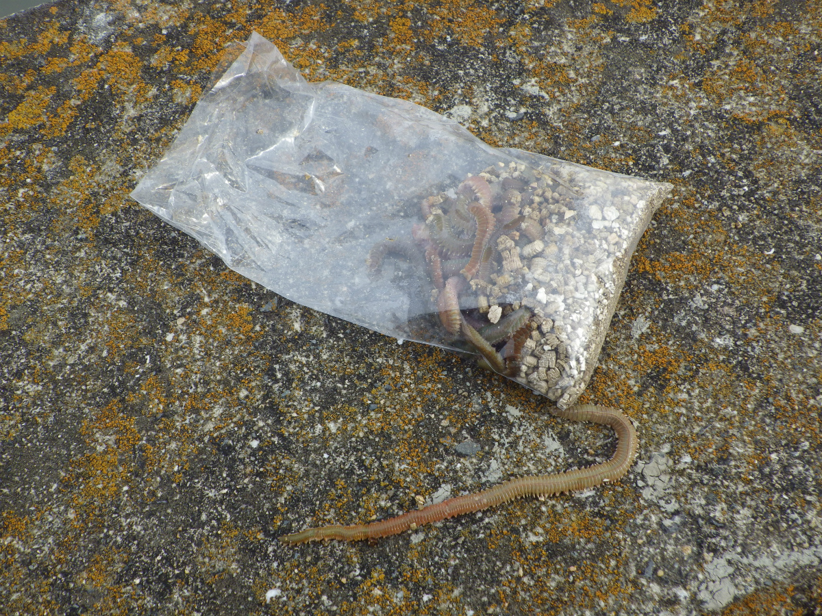 餌は前回と同じ釣具屋さんで購入した虫餌を用意。(今回は1人3タックル、2人で4時間釣る感じで700円分です)