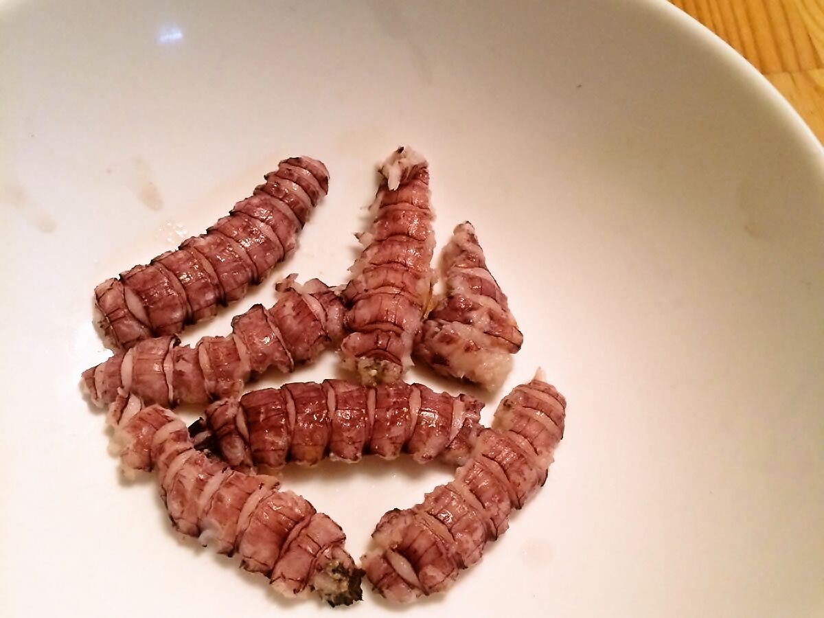 なんかミールワームみたいでグロテスクですが、シャコの甘味と甲殻類独特の香ばしさがエビより凝縮され(ていたように感じた)味がとても美味(*´艸`*)