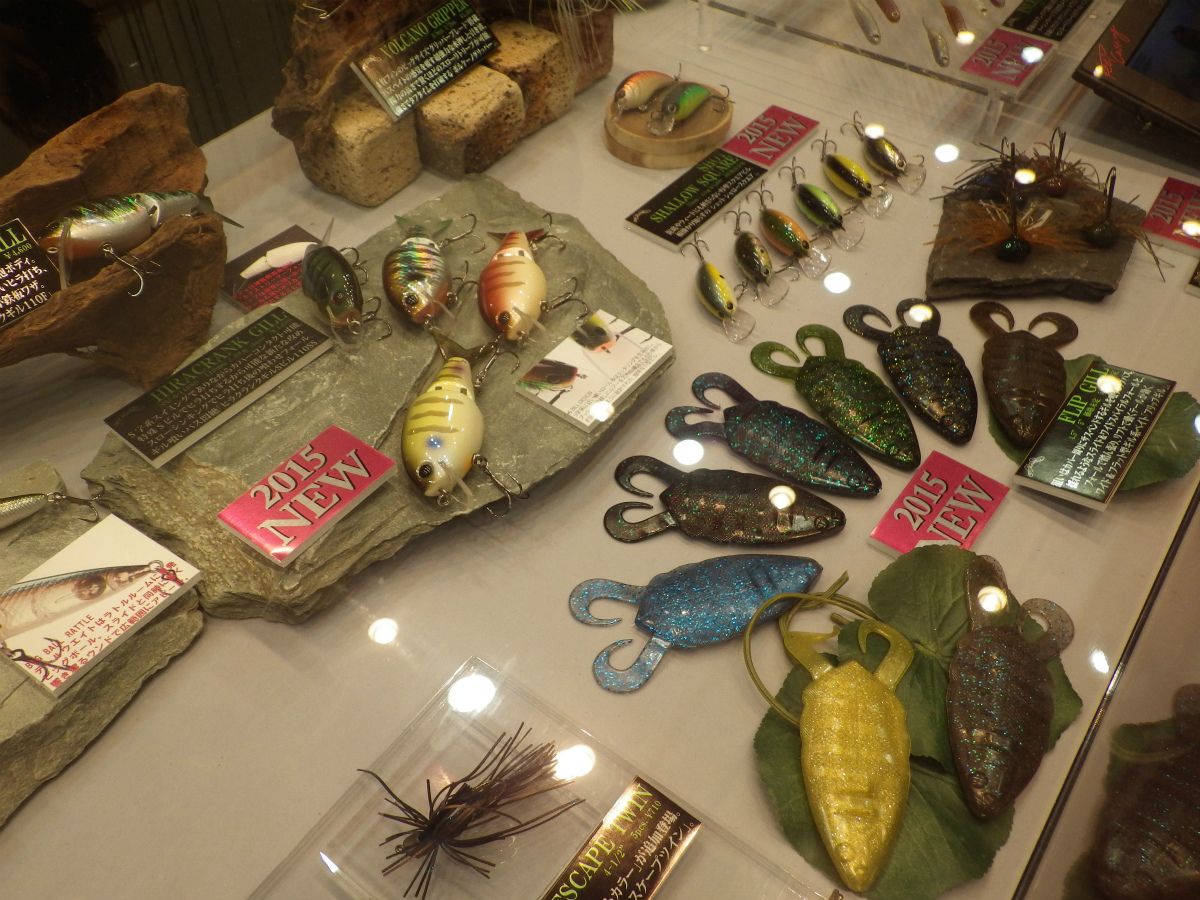 コチラはノリーズのディスプレイ、印象的だったのが右側に映る「フリップギル」というワーム。琵琶湖で栗田学さんが2009年7月2日に10.12kg(73.5cm)という、世界記録のバスを釣り上げられてからブルーギルを意識したルアーを良く目にする気がします( ´・ω・)