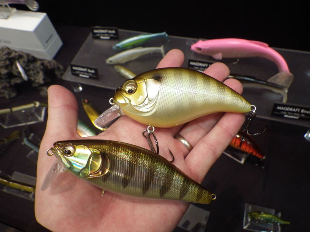 ディスプレイされていたルアーで印象的だった物をピックアップ!上が「グレネード:95.0mm、1. 5/8oz(45.5g!)」で下が「i ジャック:107.7mm、1oz(28g)」です。「i ジャック」はバズジェット位のサイズ感ですが、「グレネード」は国産クランクには珍しいアメモノサイズ!僕はこういうの嫌いじゃ無い、むしろ好きです(´∀` )