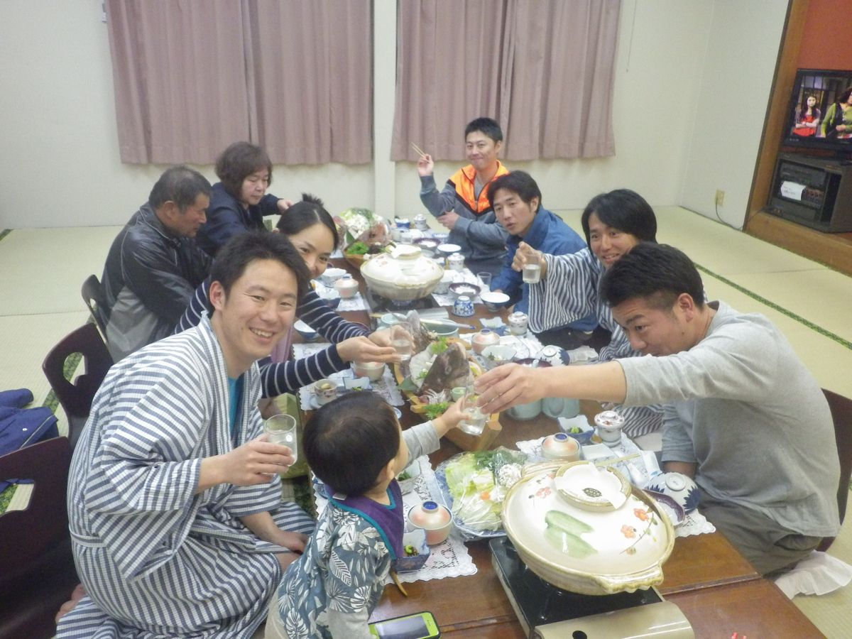 この日は荻野先生のご家族、そしてあのシロウオのおにぎりを作っていただいた奥様のご両親も一緒に、美味しいものを頂いて、明日への期待を募らせ初日の夜が更けていきました。。。