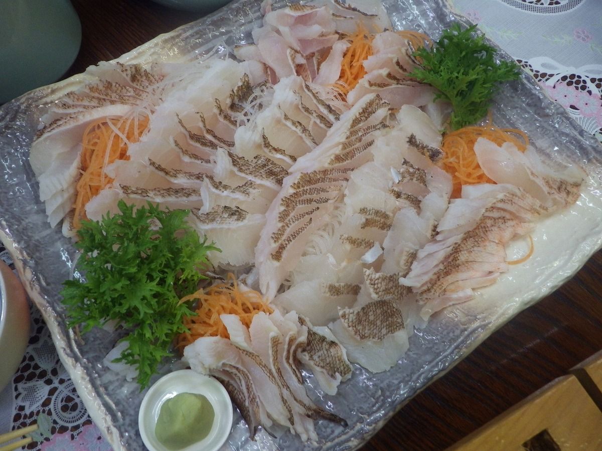 安川先生と齊藤部員が釣られたアラカブの霜降り刺!姿造りの刺盛りも美味しかったのですが、アラカブの刺身は一瞬で無くなっていました.゚+.(・∀・)゚+.゚