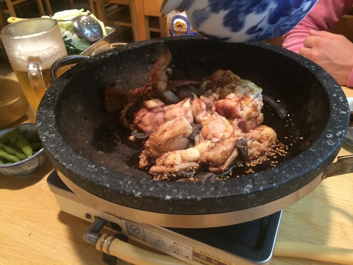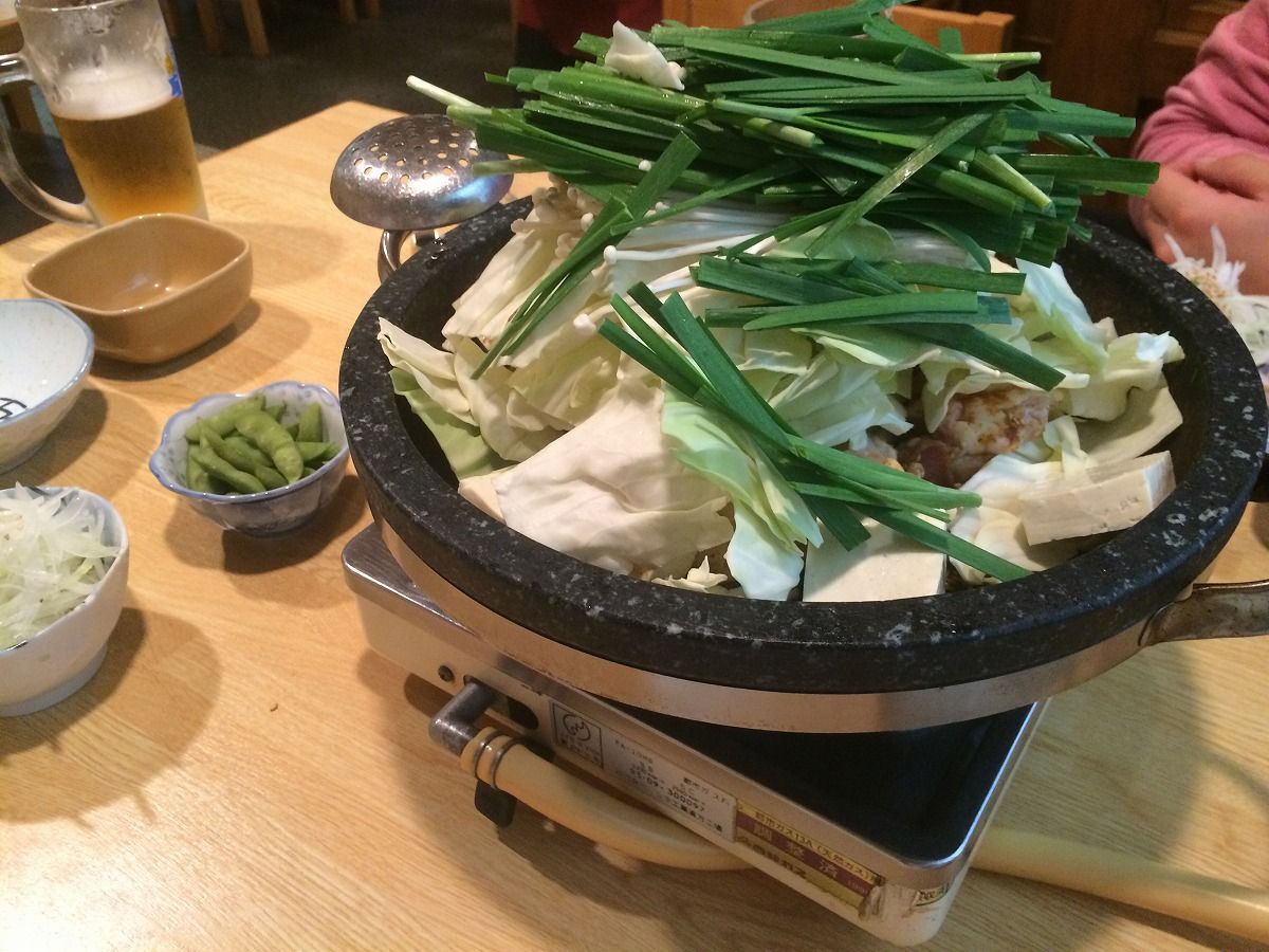 合流、からのモツ鍋
