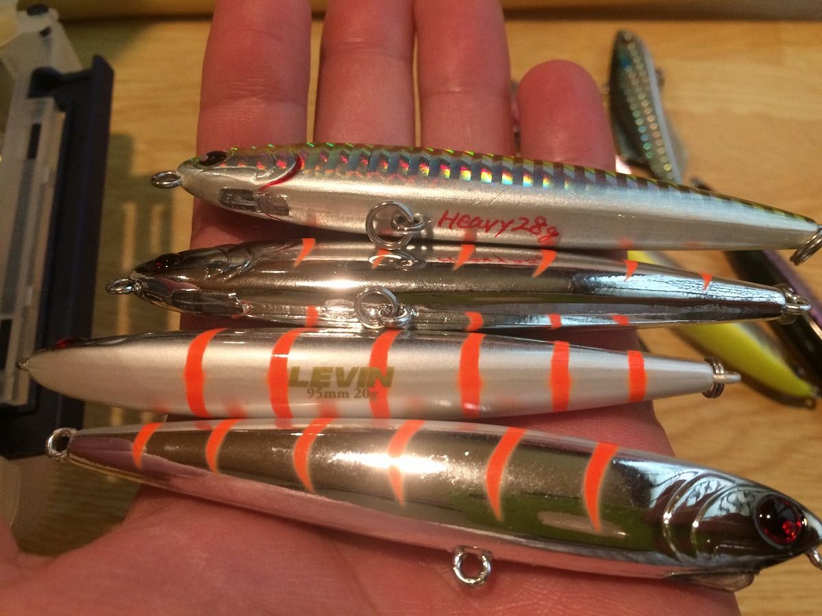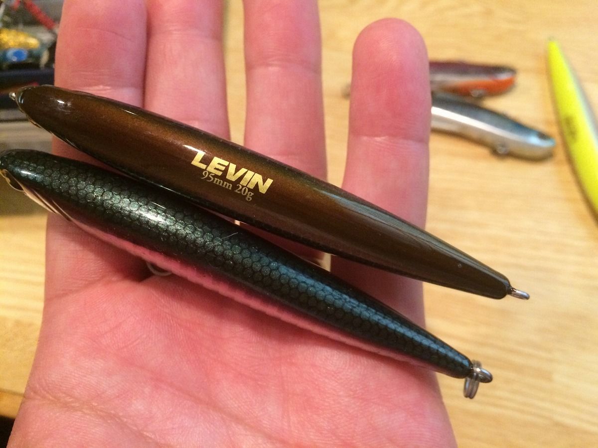 フックを逆付けにするとぶっ飛びモードに豹変する、LONGIN・LEVINの詳細はコチラ! 今回は飛距離や泳ぎににこだわってデフォルメされたLEVIN HEAVYのプロトを大漁にお持ちでした。詳細はコチラ!