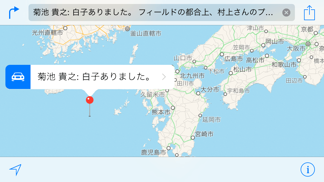 送信時間と位置情報をよく見たら菊池部員、16:11に羽田からこのメッセージ送ってますやん(゚д゚)エッ!! ほんで17時に『やま中』集合!?(っていうかどこの山中!?)