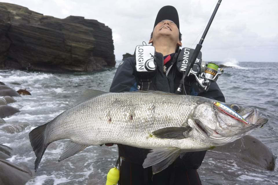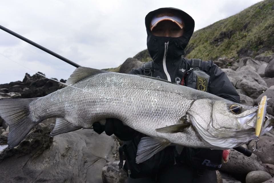 菊池部員と対馬さんのブログに寄せられる熱い期待を、このヒラスズキと共に一身に背負いました!!