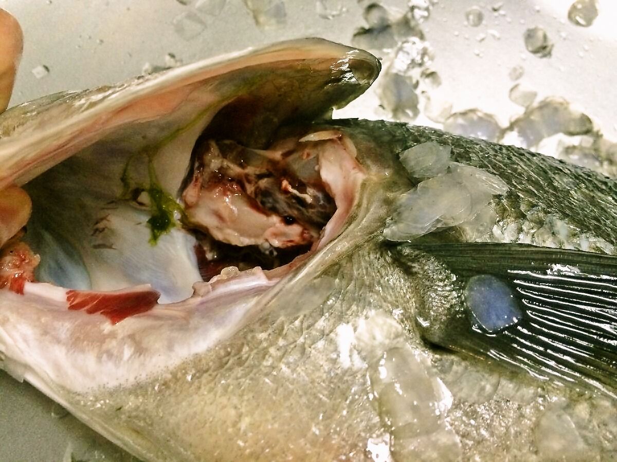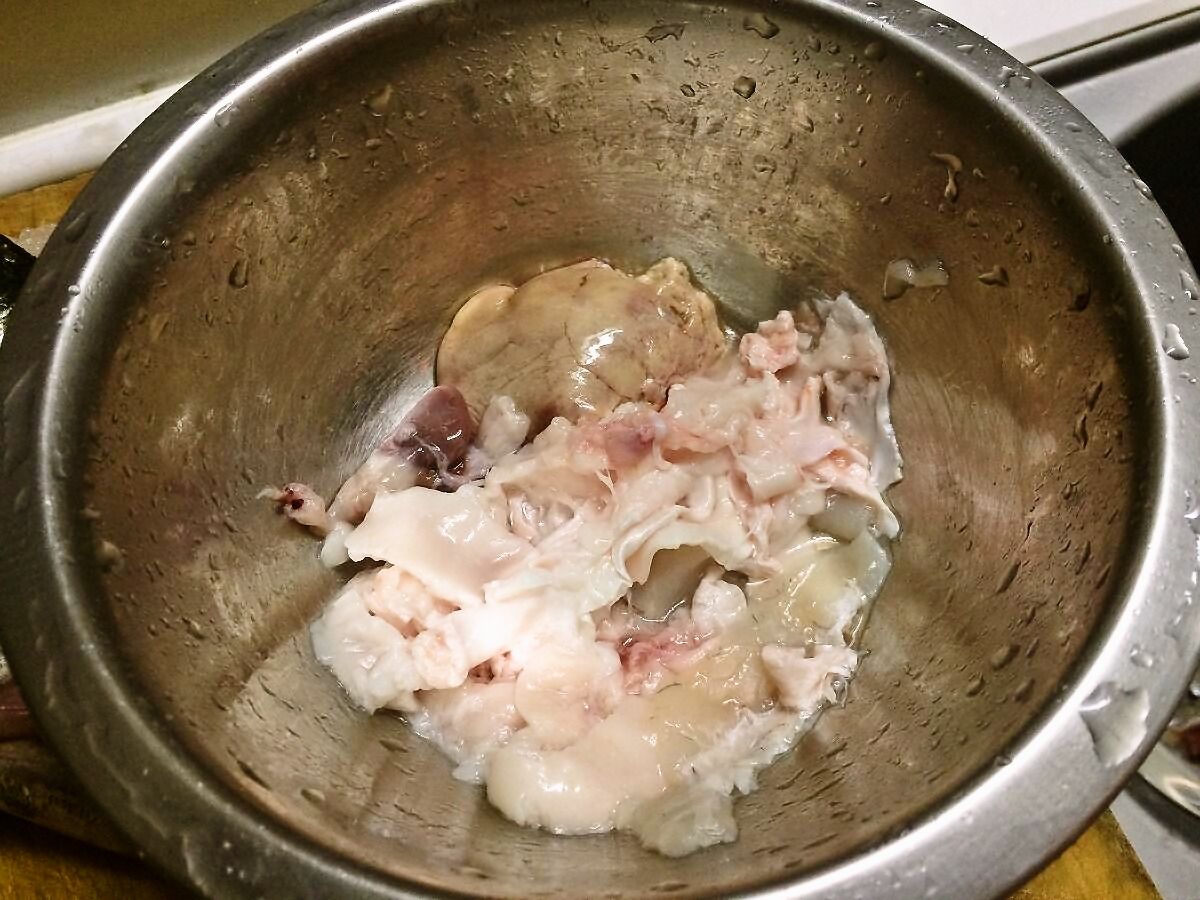 以前シーバスの色んな部位を食べてみた時に聞いていた、浮袋が残っていたので、今回はコレもいただきます(*´艸`*)