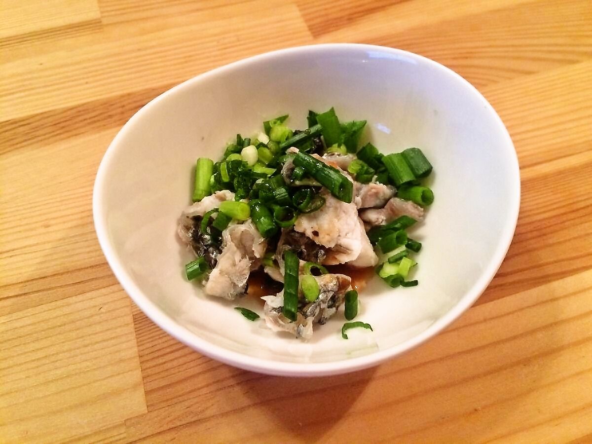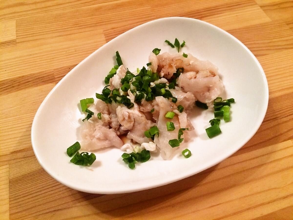 さっぱりとポン酢でいただく浮袋は、臭みも無くプリプリの食感がグッドd(´▽`) 「豚足みたい」と言われるのも納得です。