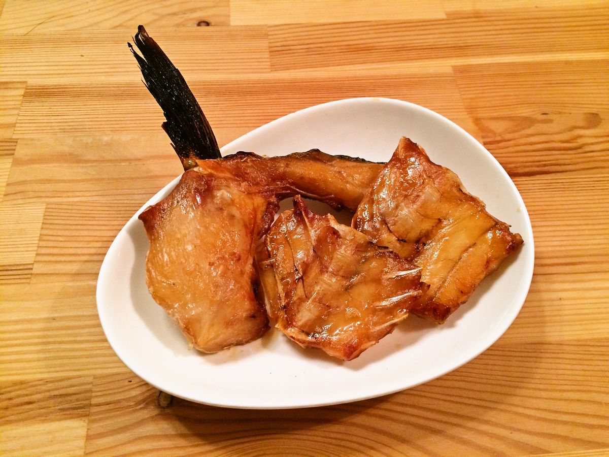腹骨周りの肉や、胸ビレなど端っこの部品は1日~2日塩麹に漬けておきます。