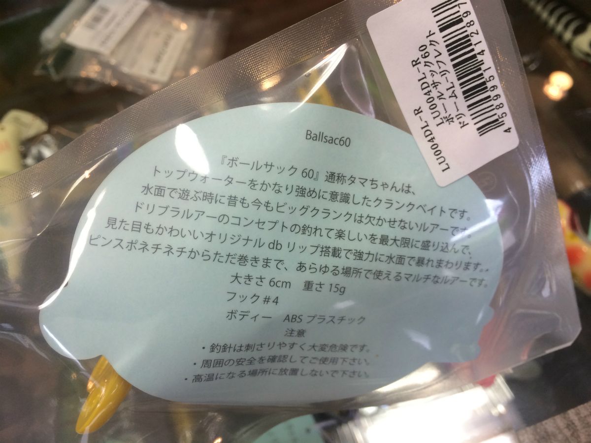 こちらは元々、ティムコでルアー作りをされていた方が、自社ブランド Dream Brothers(ドリームブラザーズ)を立ち上げて制作~販売されているBALLSAC60(ボールサック60・通称タマちゃん)!!
