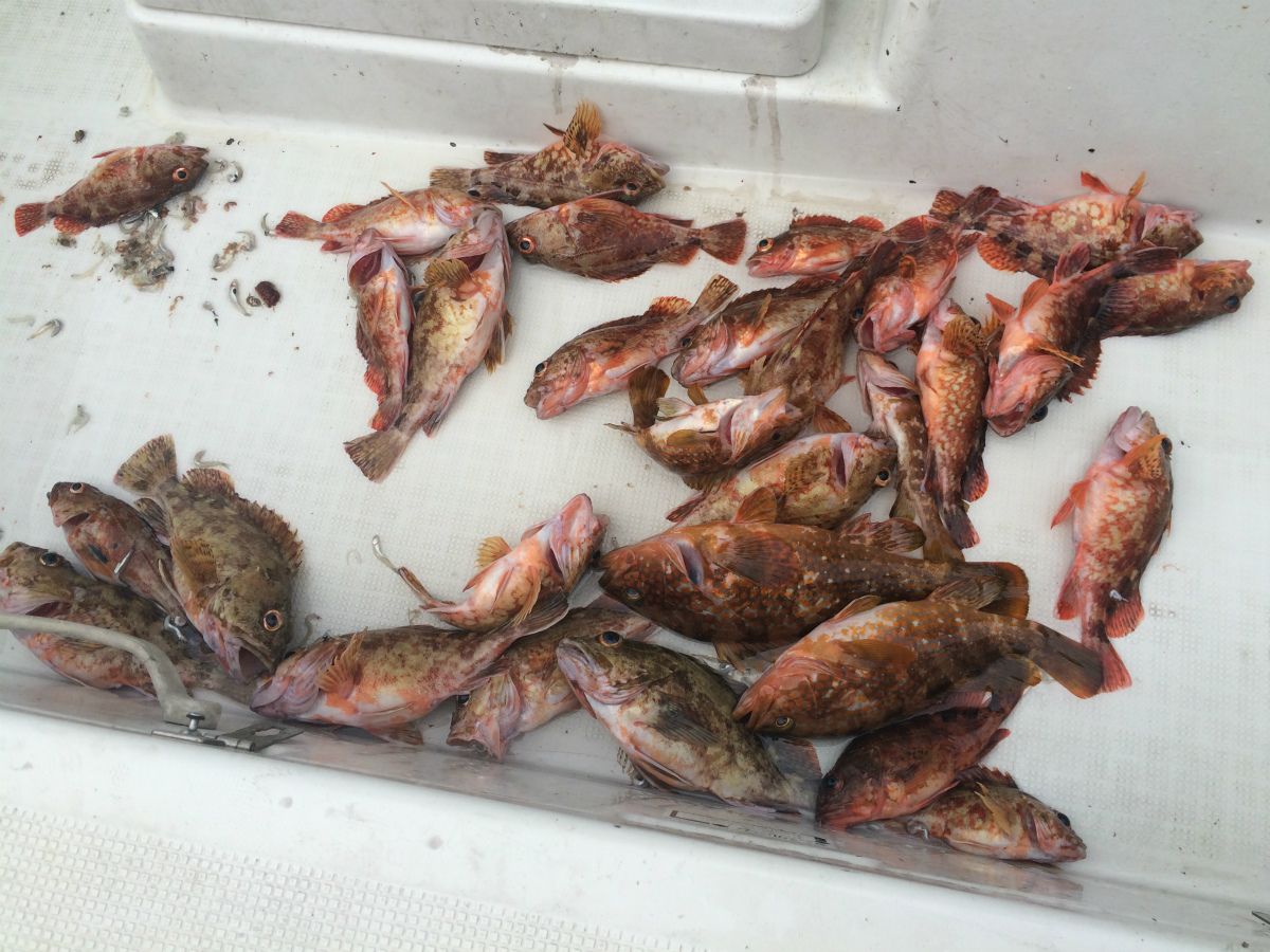 だもんでここで船長の判断により、イカを見切って急遽根魚調査に変更!!大至急船を走らせて、その間にリグを巻き替え、、、