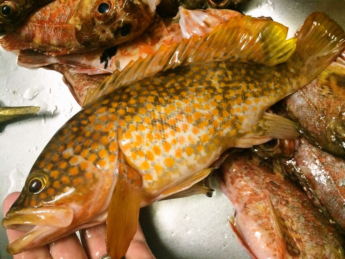 釣れた個体の中には錦鯉の様に、魚体に模様の付いたアラカブもいました(゚д゚)!?