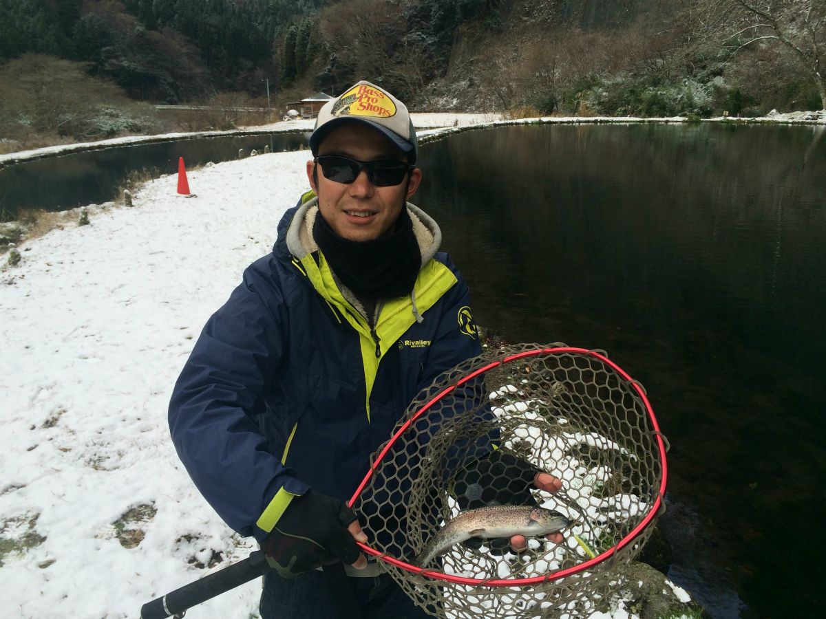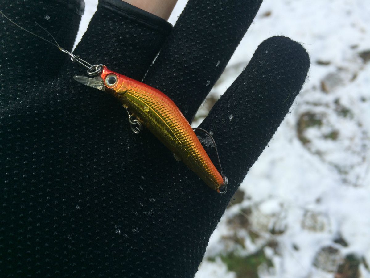 ファーストヒットは僕がいただきました\(^o^)/ 本当ならジョイクロで黒鱒釣っているはずが、雪のためミノーでジョイクロサイズの虹鱒釣っています(゚⊿゚)シラネ