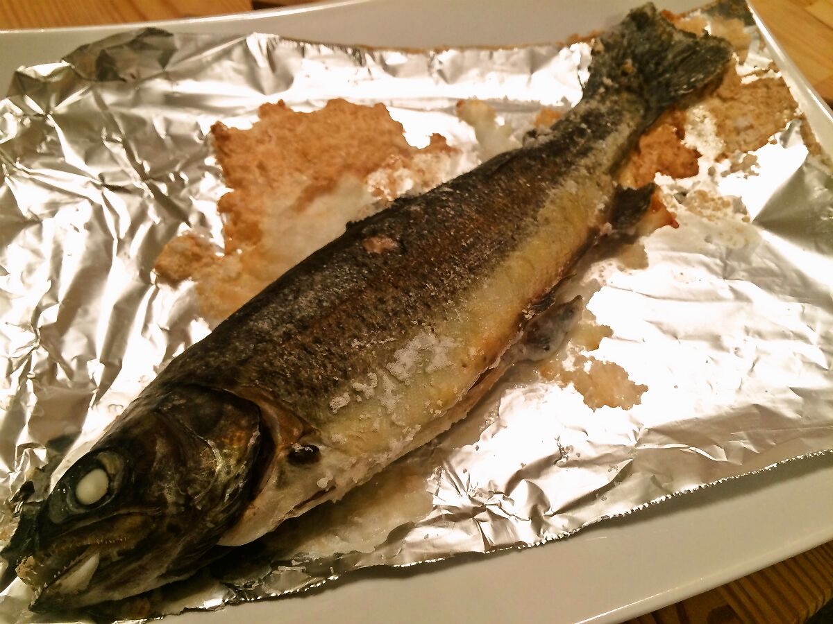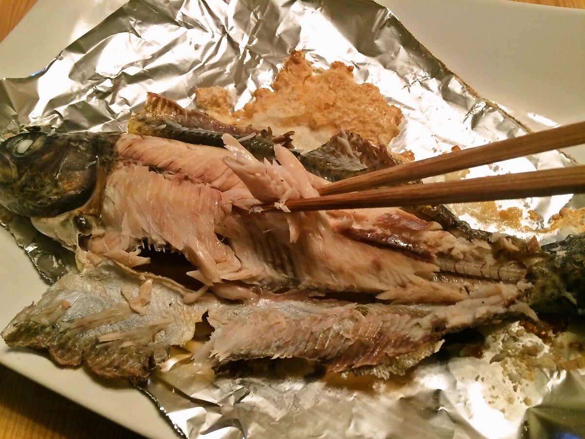 1匹はシンプルに塩焼きで頂きました。鱗を取って、内臓を出して、水気を切って、塩をまぶして、オーブントースターの160℃で両面10分ずつ焼けば完成です♪