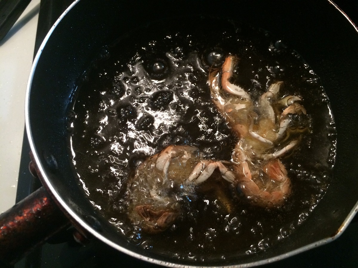1.鍋に油を入れて熱し、まじゃくを素揚げしますヽ(゚∀゚)ハイ
