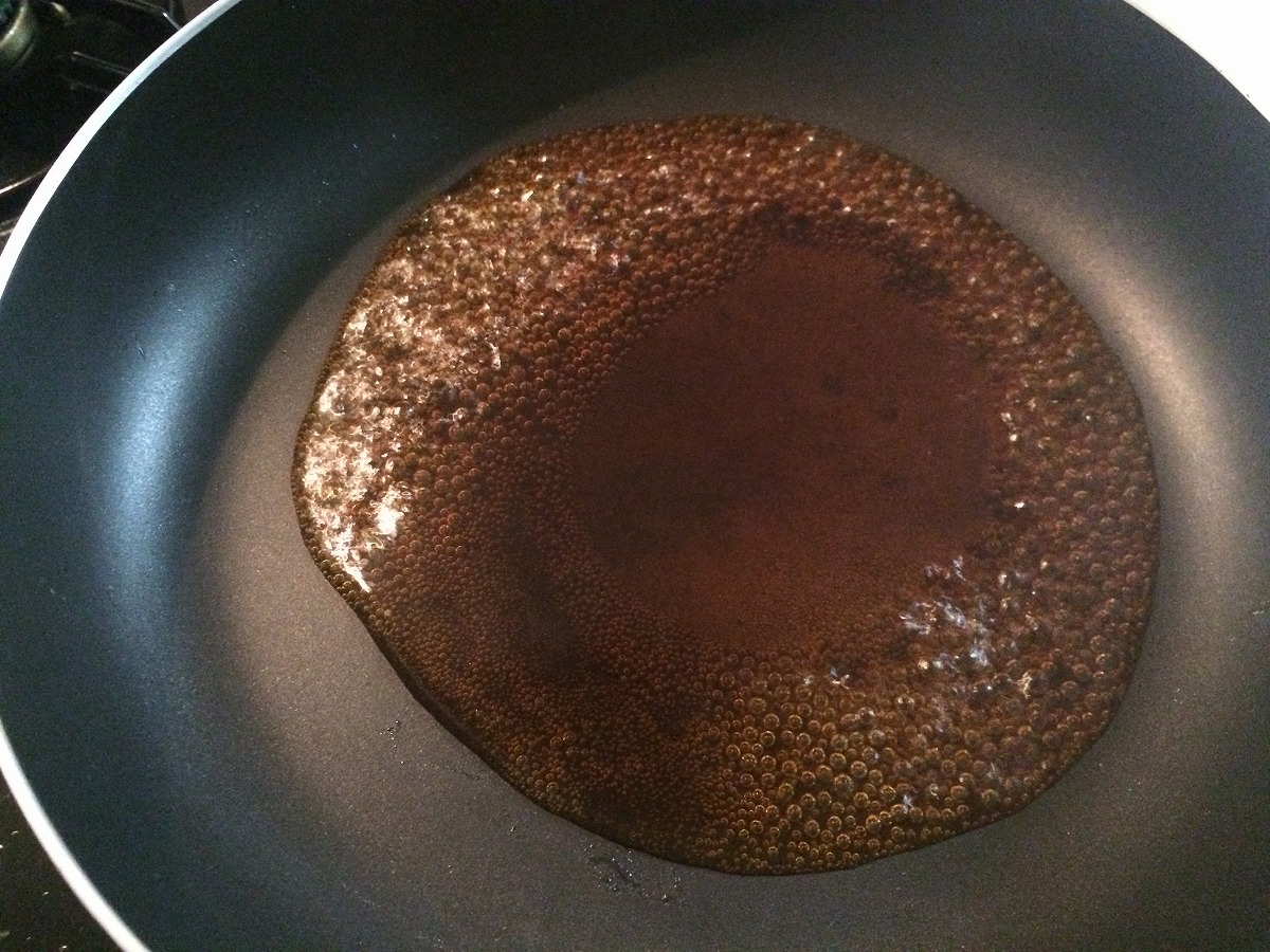 4.調味液が少ないので、隅によてせ液を絡めながら煮て、液がなくなったら炒りゴマを絡めて完成です(*´∀`*)
