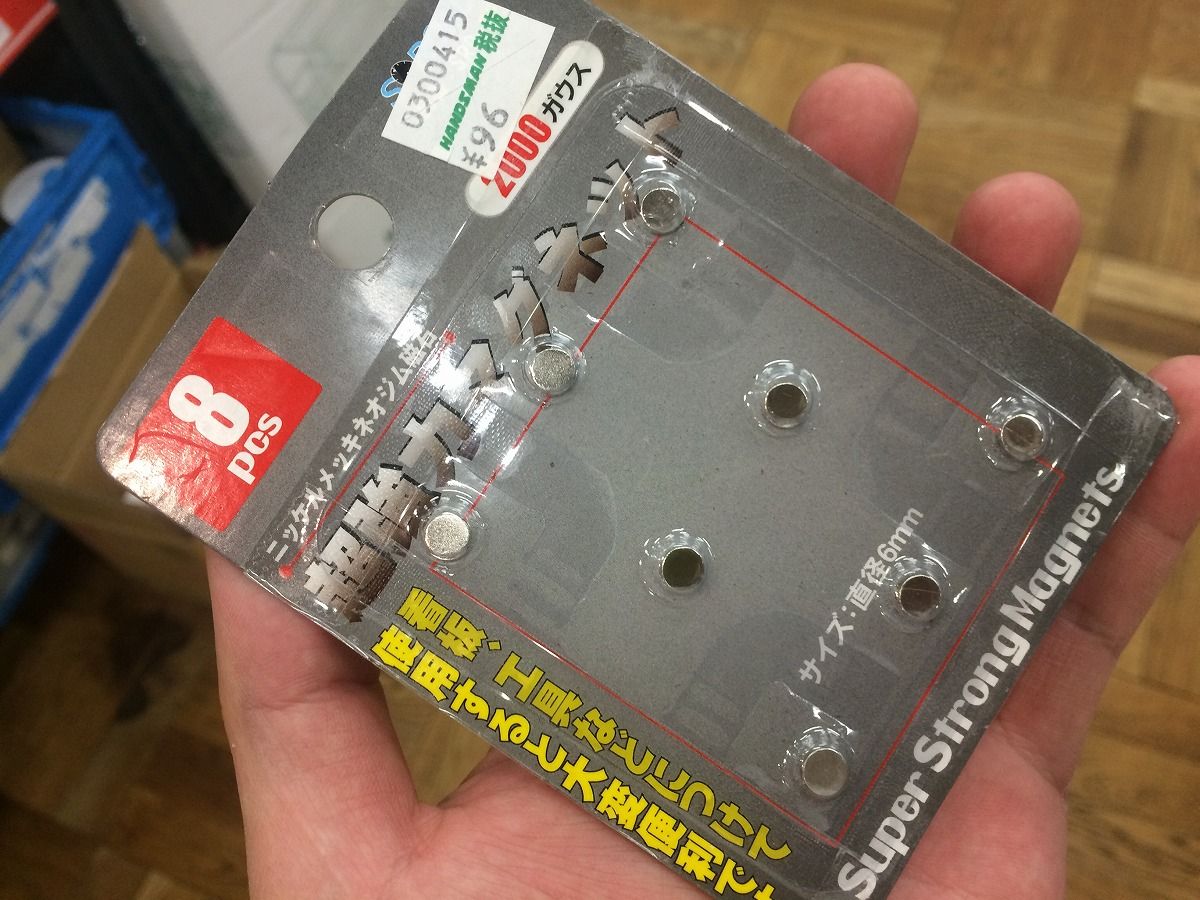DIYショップの聖地ハンズマンに、超薄型・超強力のネオジム磁石がなんと100円以下で販売されていましたΣ(゚Д゚;