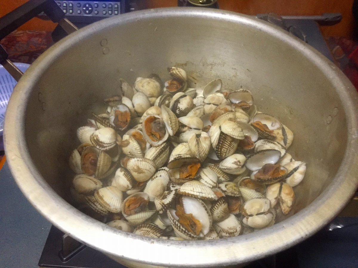 隊長持参の有明産サルボウ貝はシンプルに塩ゆでだけですが、パない美味しさ!!