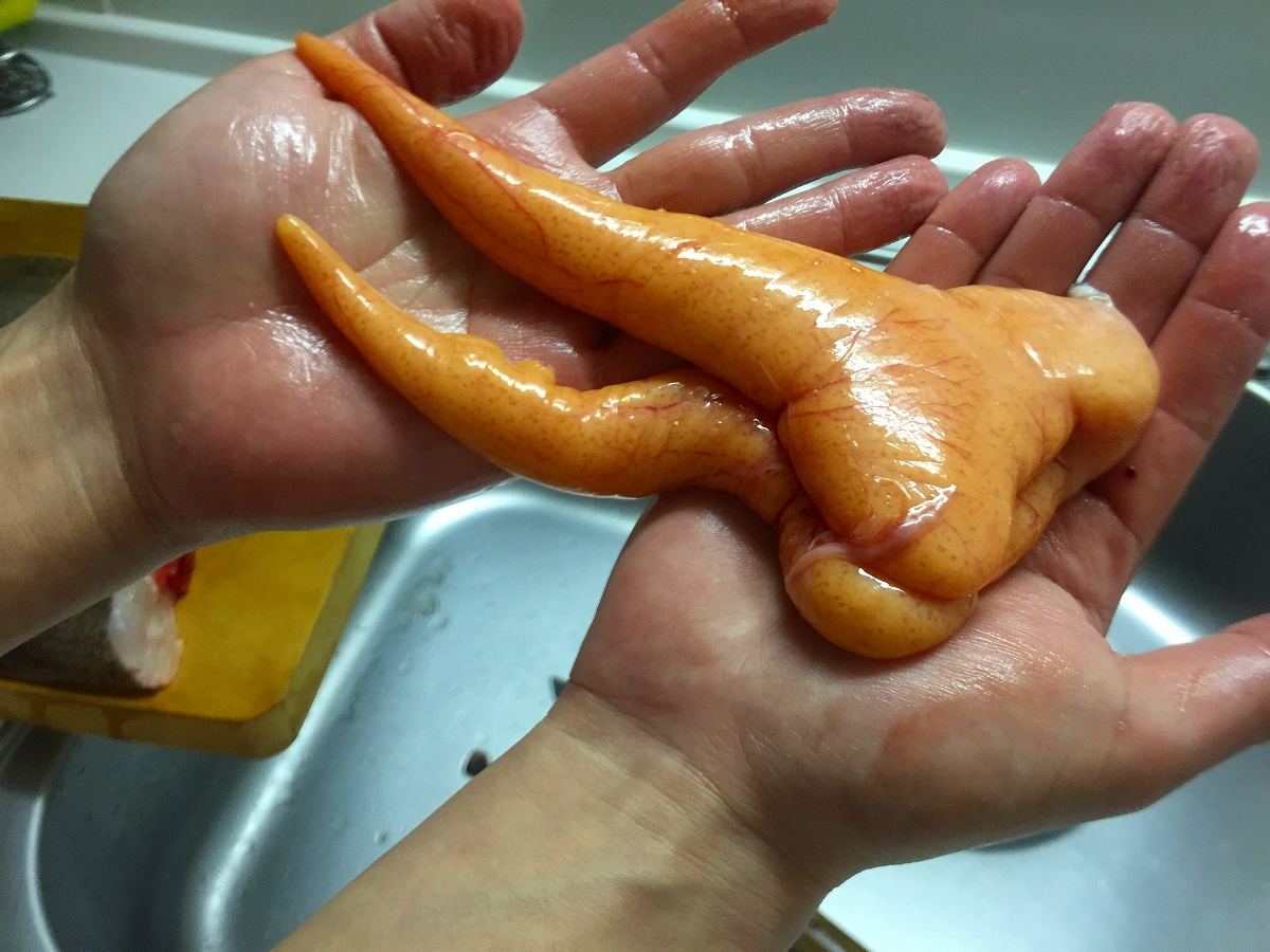 ヨコスジフエダイの内臓を取り出した後の側面に付いていた不思議な内臓!