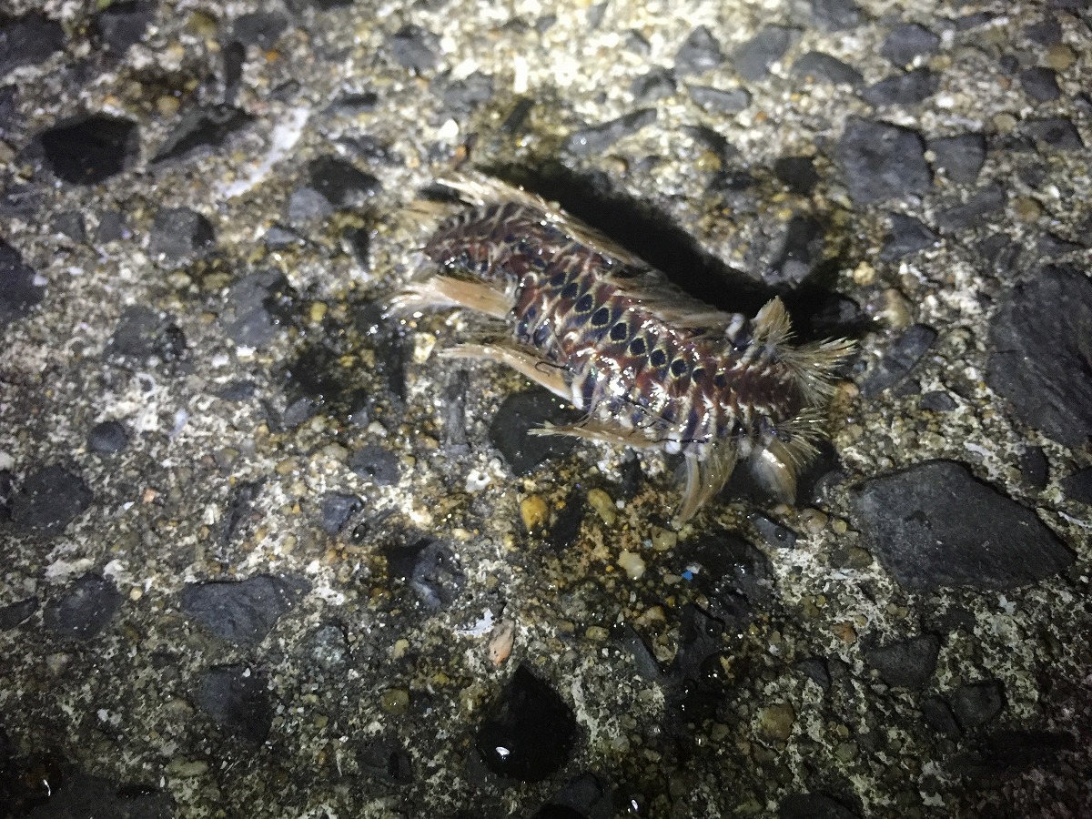 穴子が釣れず暇なのでモンスターがいたのですくってみたり。※このモンスター(ウミケムシ)も有毒なので絶対素手で触らないでください!