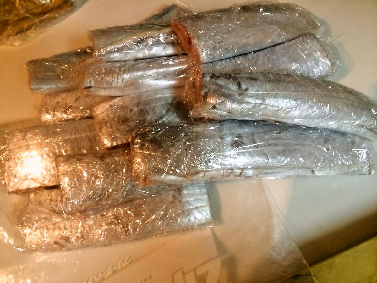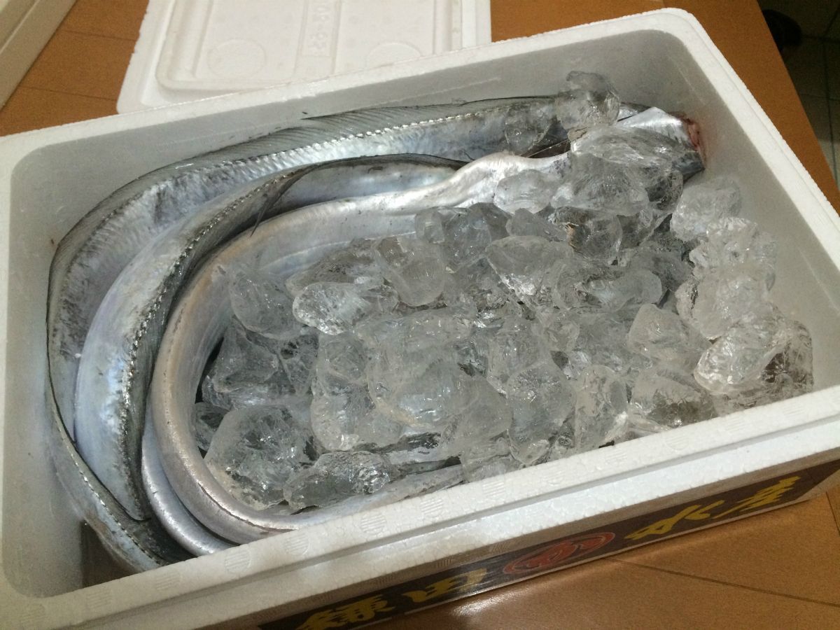 そんなことお構いなしにすぐさま開封!!なんと、指4本サイズの太刀魚が10匹も入っているではありませんか.゚+.(・∀・)゚+.゚