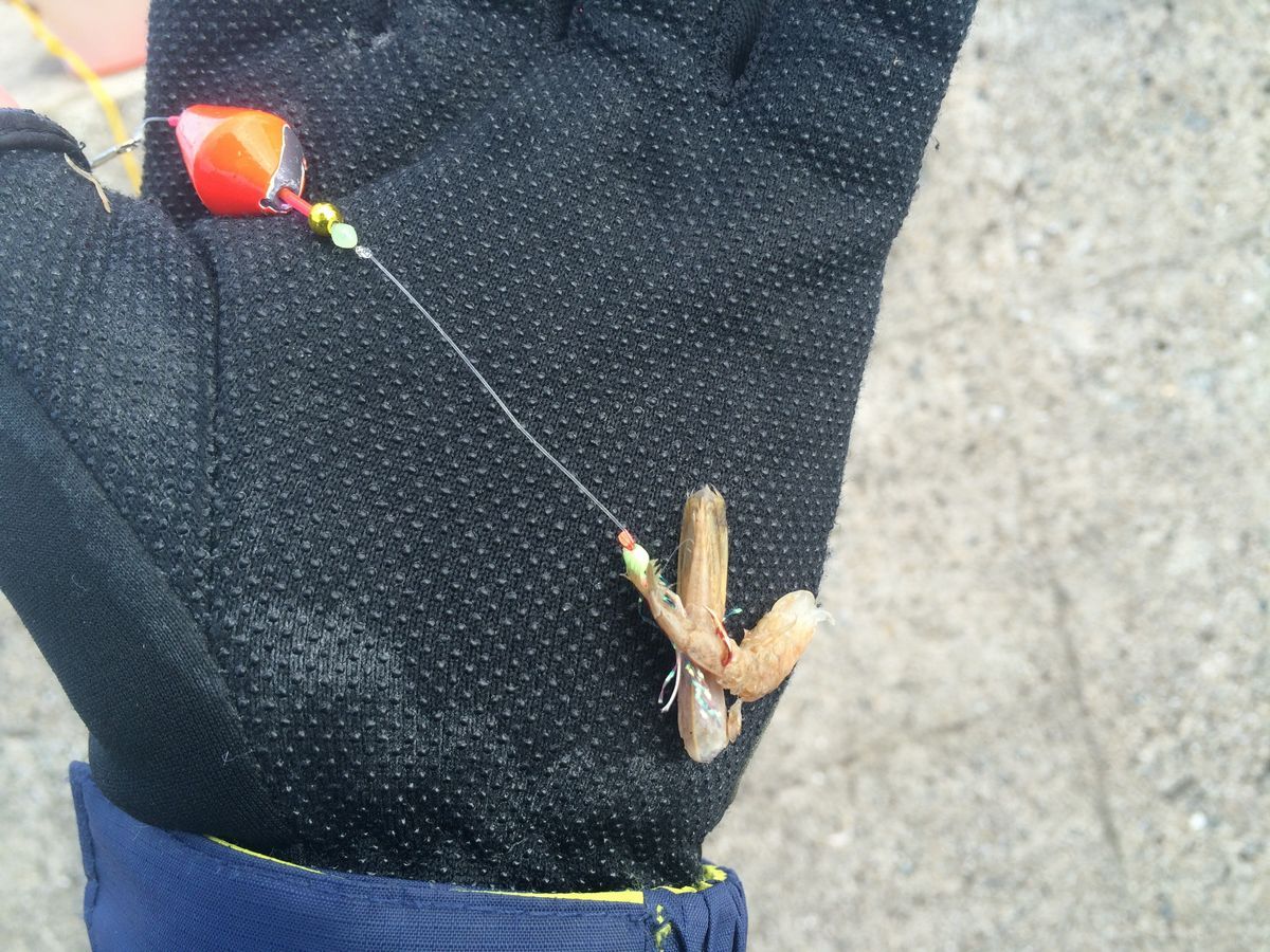 釣嫁にはコチラ、サビキの胴付き仕掛け(オモリはナス型の4号)にオキアミを付けて落とすだけ*・゚(n‘∀‘)η゚・*:*:*