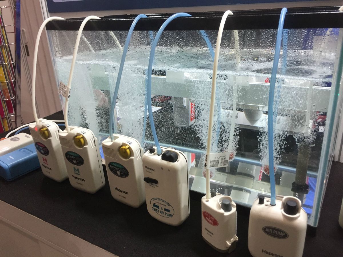 餌や魚を活かすためのブクブクもこんなに豊富な種類の展示がある。