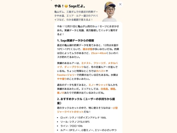 (EXTENDS) Sage ー バス釣り特化のAIコンシェルジュ